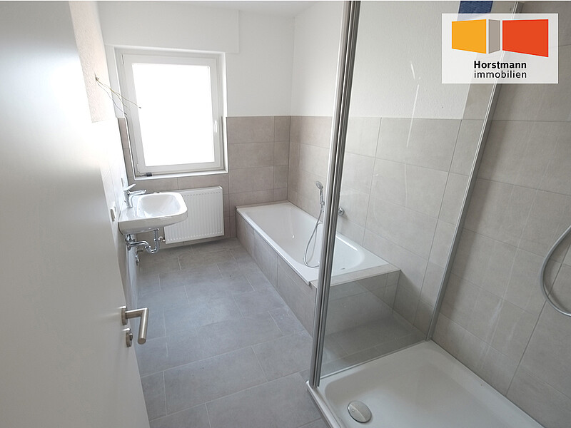 Diese Wohnung wird dem neuen Mieter komplett renoviert übergeben. Angefangen bei modernen Kunststofffenstern mit Dreifachverglasung und elektrisch betätigten Aussenrollladen bis hin zu neuen Tapeten an Decke und Wände. Das neue Badezimmer, ausgestattet mit einer Dusche und einer Badewanne, laden nach einem arbeitsreichen Tag zum Relaxen ein. Das Badezimmer und das separate WC sind gefliest. Im Wohnzimmer und in den drei übrigen Räumen ist ein heller Vinyldoden in Holzoptik verlegt. Die Türzargen sind neu gestrichen worden. Die Türblätter und die Wohnungseingangstür sind neu, und mit modernen Drückergarnituren ausgestattet. Im Wohnzimmer und in den drei Räumen findet der neue Mieter TV-Anschlüsse, die an der SAT-Schüssel angeschlossen sind. Zu der Wohnung gehört eine PKW-Garage, die mit 60,- € mitvermietet wird. Ein weiterer PKW-Stellplatz kann für 30,00 € dazu gemietet werden. Im Gemeinschaftskeller können Sie die Waschmaschine und den Kondenztrockner aufstellen. Darüber hinaus gibt es einen Trockenkeller. Ein eigener Keller für die Wohnung rundet das Angebot ab.