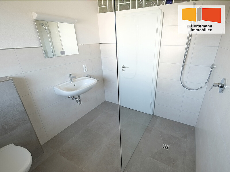 Auch die Ausstattung des Badezimmers ist in der Erdgeschoßwohnung gleich.